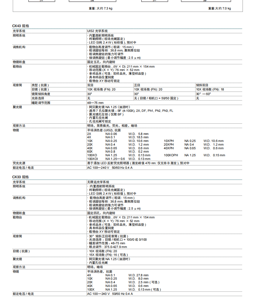 8.0mm)、40X(N.A.≥0.65 W.D≥0.6mm)、100XO(N.A.≥1.25 W.D≥0.13mm)