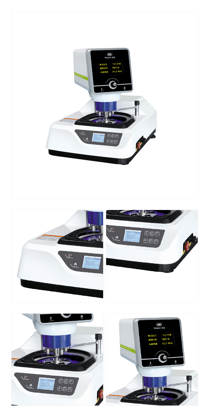 本機采用了先進的微處理器控制系統,使得磨拋盤、磨拋頭的轉速實現無級可調,制樣壓力、時間設定直觀、便捷。操作者只需更換磨拋盤或者金相砂紙和拋光織物即可完成磨、拋工序的操作,從而使本機展現了更加廣泛的應用性。本機具備磨拋盤旋轉方向可任意選擇、磨拋盤可快速更換;多試樣夾持器和氣動單點加載;磨料自動配送(分液器可選配)等功能,還具有轉動平穩、安全可靠、噪音低及采用鑄鋁底座增加了磨拋的剛性等特點。