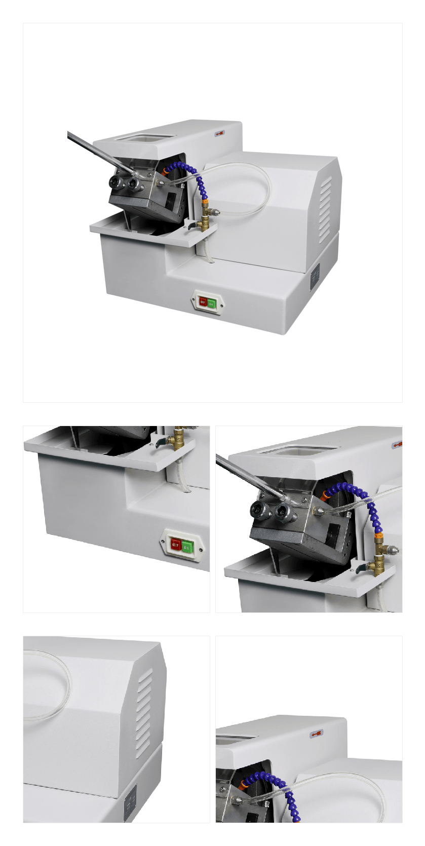 本機利用高速旋轉的薄片切割片來截取金相試樣,適宜切割較硬的金屬材料;本機有冷卻裝置,用來帶走切割時所產生的熱量,避免切割過程中試樣過熱,而改變組織。