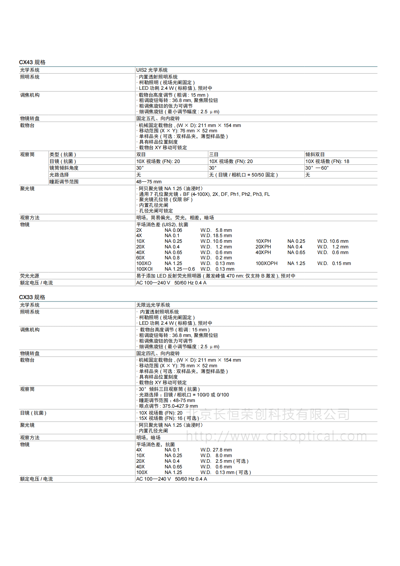 多功能鏡頭選擇: CX33提供多種倍率的鏡頭選擇,涵蓋了從低倍到高倍的范圍,適應不同樣本的觀察需求。
