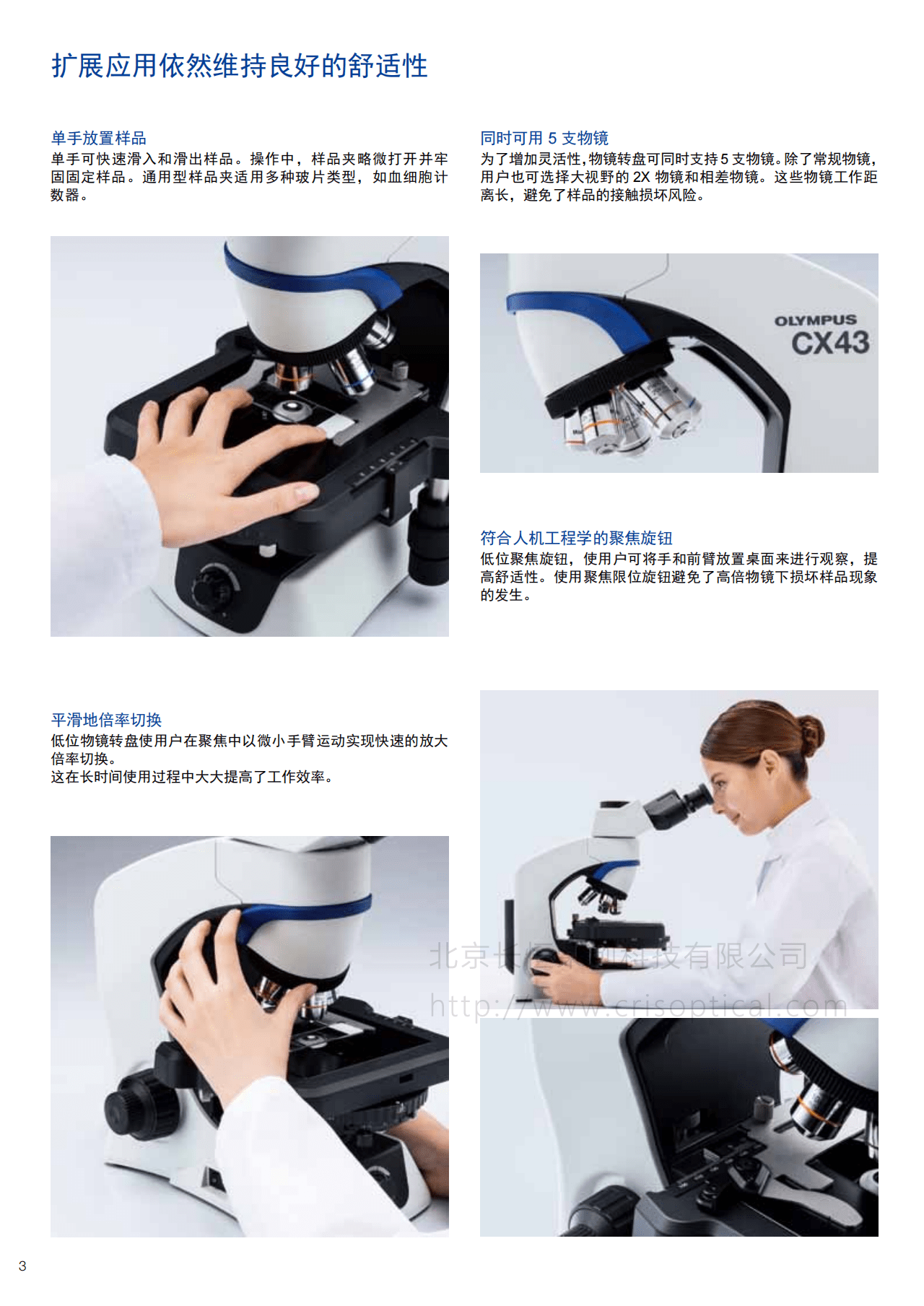 CX43的設計注重用戶體驗,操作面板簡單直觀,使得用戶能夠輕松上手。配備了便于調節的鏡頭和對焦機制,以適應不同實驗需求。這種用戶友好性質使得CX43成為科研實驗室和教學實驗室的理想選擇。